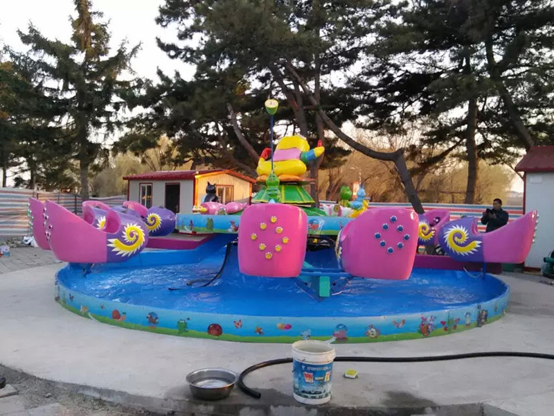 本設(shè)備為無(wú)基礎(chǔ)可移動(dòng)的兒童游樂(lè)設(shè)備,適合商場(chǎng)、場(chǎng)和公園使用,因?yàn)槲伵L毓り?duì)的占地面積不大,而且在6個(gè)大臂上有著12個(gè)座艙,可以容納12個(gè)成年人同時(shí)游玩,而且在同時(shí),每個(gè)蝸牛殼座艙上面都有著個(gè)可以打水的蝸牛噴水槍